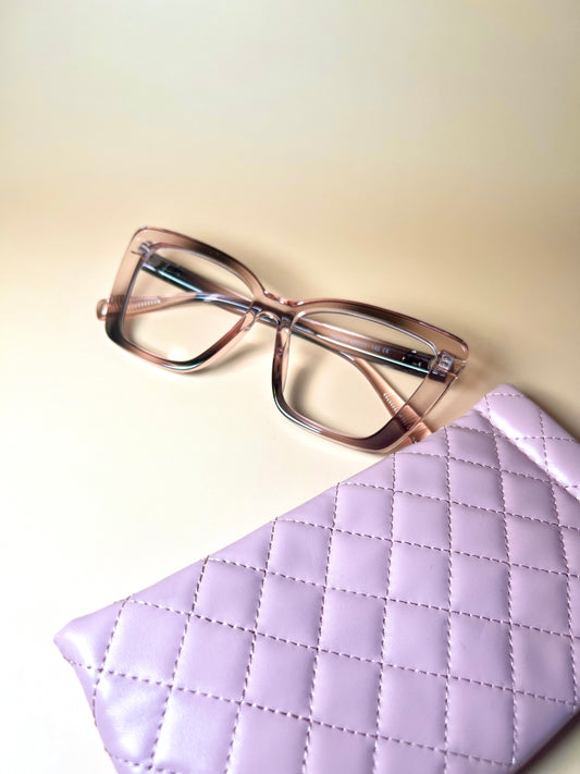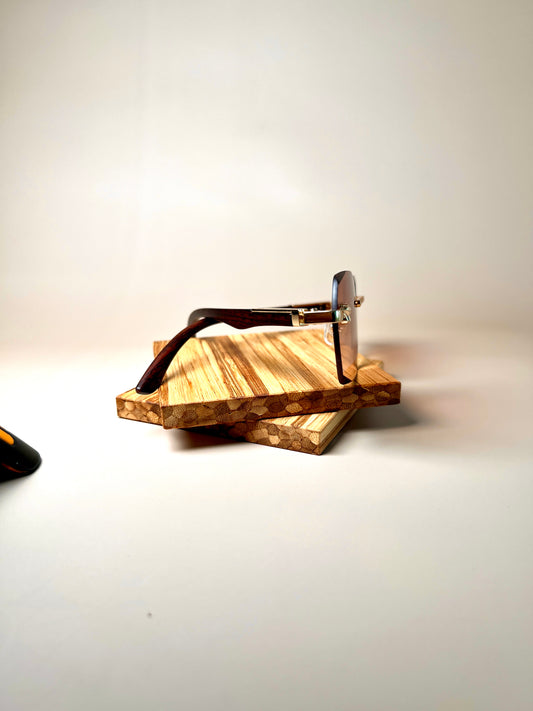 Carrie Unisex Rectangle Gold/Brown Tinted Rimless Frames